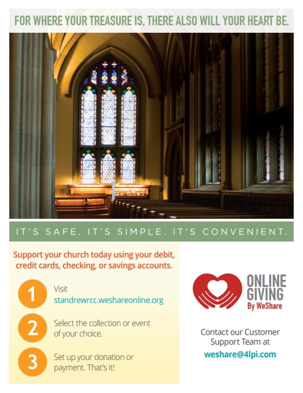For your convinience, you can securly make your contributions online through WeShare. Click on the image below or by visiting our donations page for more tithing options.