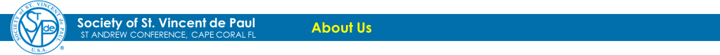 The St. Andrew Conference, Society of St. Vincent de Paul, was established in 1970 to provide assistance to the parish community of Cape Coral and a limited area in North Fort Myers. All our members are volunteers who chose to become Vincentians to heed our Lord’s call to soften their hearts, and “…freely open [our] hand and generously lend what suffices to meet that need.” [Deuteronomy 15:7-8]